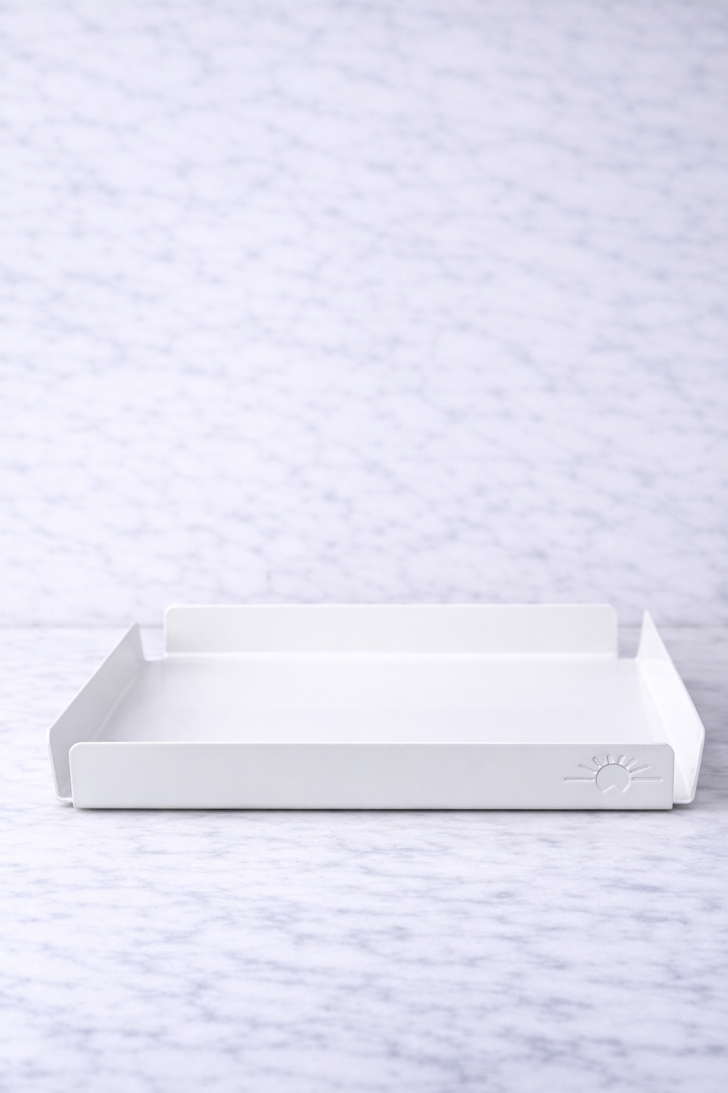 Brickan är tillverkad av aluminium och pulverlackad i en matt vit kulör.