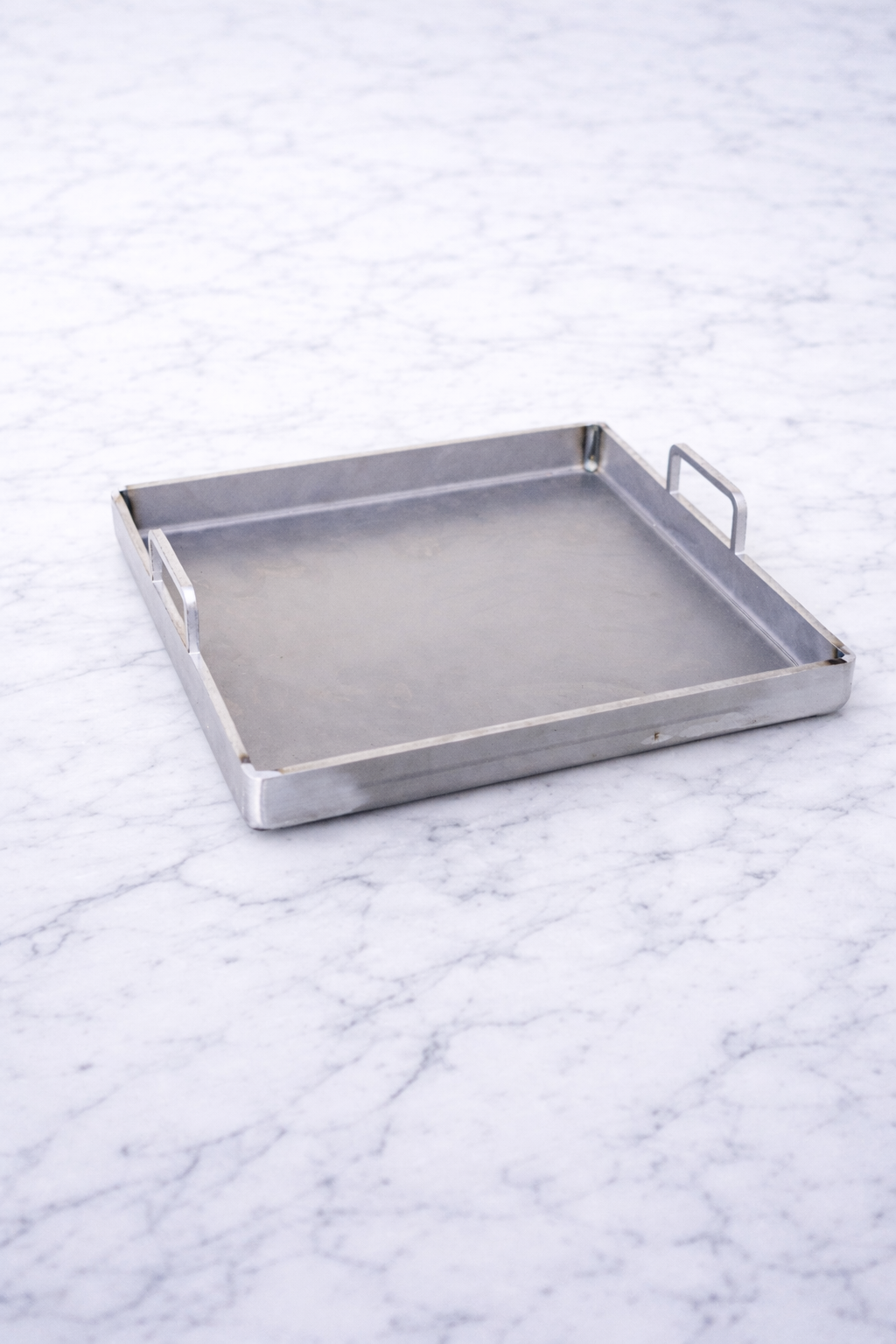 Stekbrickan är tillverkad av varmvalsat kolstål och är småskaligt producerad i Stockholm. Materialet kommer att skifta färg efter första användningen, efter att du bränt i den. Kolstål får en rödbrun, svartskiftande färg och åldras vackrare och vackrare ju mer du använder stekbrickan.